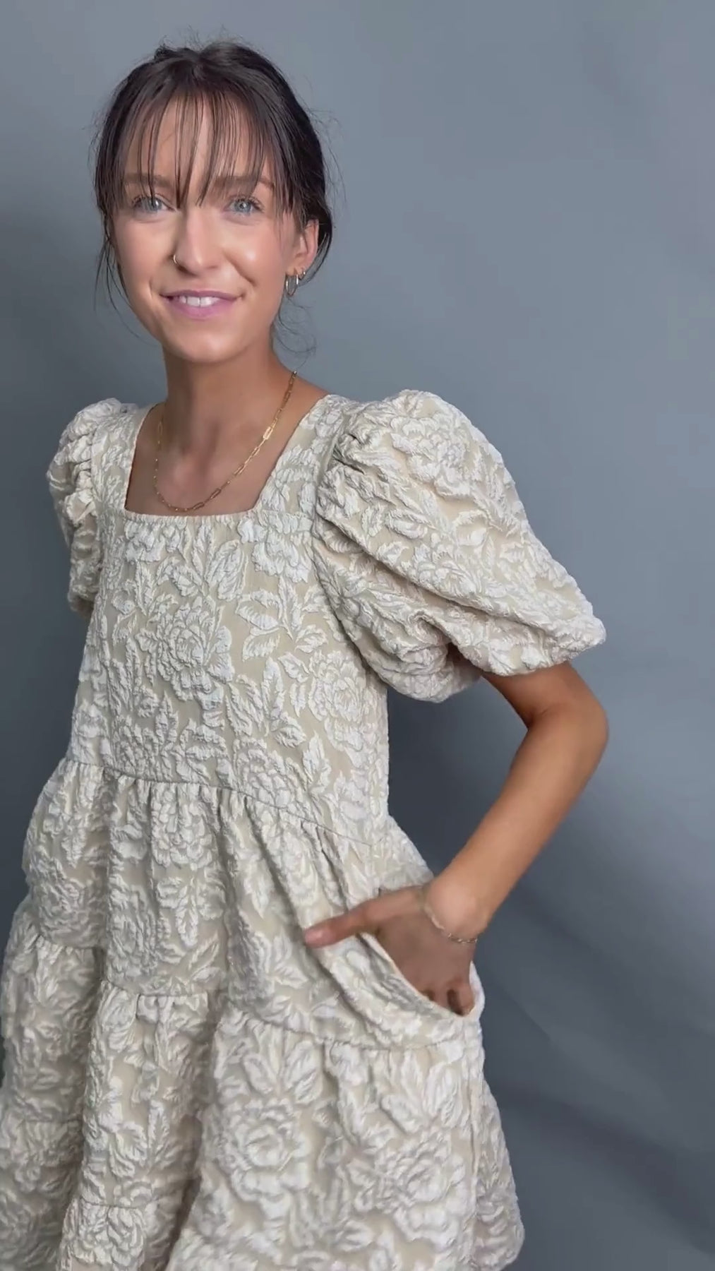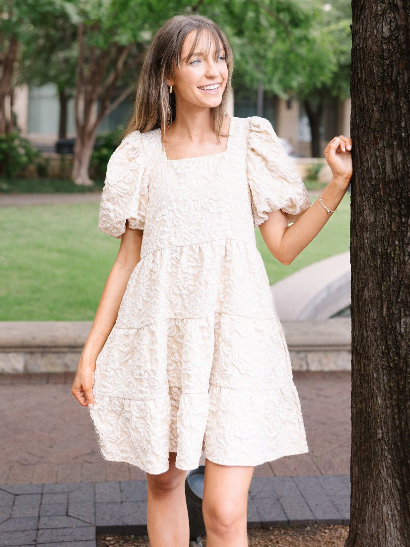 Dolly Doll Jacquard Dress, Beige