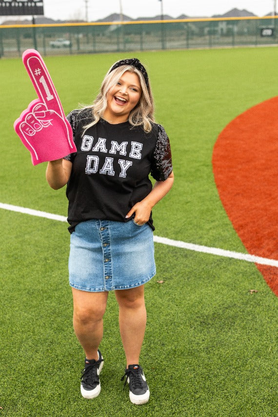 Its oversized fit provides comfort without compromising style, while the high-stretch fabric flatters your figure effortlessly. Designed with a classic crew neck, this piece stands out with sequin-adorned sleeves, fully lined to prevent any discomfort on the skin.